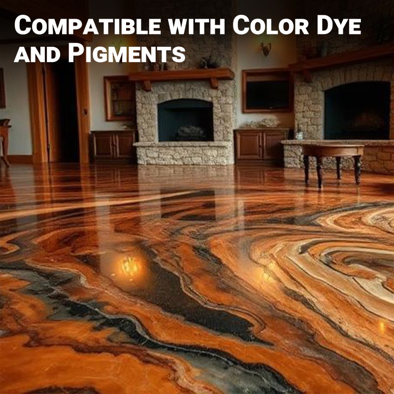 Locks in color, metallic swirls or decorative flakes with a clear, durable topcoat that enhances visual impact and wear resistance.
